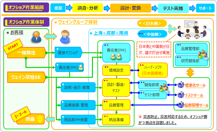- 日本語と中国語に長けたSEを開発現場に常駐